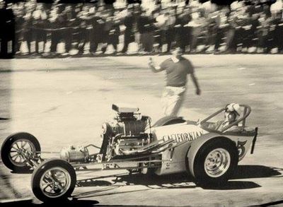 The Californian is a blown Chevrolet dragster owned by Manuel Gonzalez of Wilmington, California.