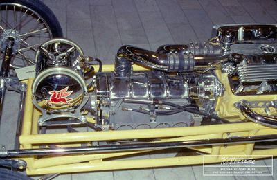In 1961 Sydney Allard built the first US inspired dragster of the UK. After completing The Allard Chrysler Dragster, Sydney invited Dean and the Mooneyes Dragster to come to the UK to race.[1]