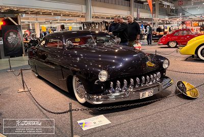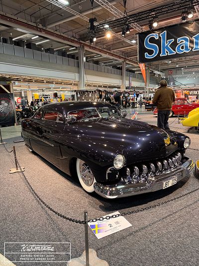 Ulf and Mari Kusendal's 1950 Mercury of Kvissleby, Sweden, is a traditionally styled custom that blends American heritage with Scandinavian craftsmanship. Originally restyled in the United States during the 1960s, the car was later imported to Sweden, where it received a chopped top and further modifications before coming into Ulf’s hands in 2001.[1]