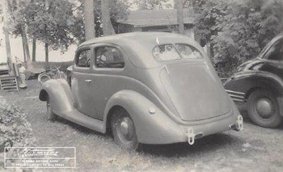 1937 Ford Tudor Sedan Slantback owned by Bill Hebal of Stevens Point, Wisconsin. In 1959 Bill traded the sedan for a hot-rodded 1933 Ford 5-Window Coupe.