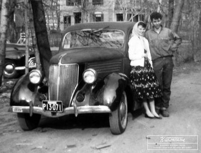 Together with his cousin, Moloney performed his first modifications by nosing and decking the 1939 Ford, installing dual exhausts, lowering the rear with longer shackles, and fitting blue dot taillights. Frank gave Moloney his first driving lesson in the Phaeton in 1952, and Moloney continued to maintain Frank’s subsequent cars, including a 1939 Ford Standard coupe with a modified flathead and a 1940 Ford Deluxe coupe powered by a 1949 Cadillac engine.[1]