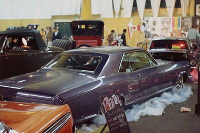 Joe acquired a 1949 Chevrolet from his grandparents. The first thing he did was to replace the 6 cylinder engine with a Corvette V8. He then painted the car silver and purple in what he called, "The Fade Away." Joe may be the first person ever to do this type of painting. There were many street cars, show cars and race cars painted at this shop. One of the cars was the fuel dragster of Stellings and Hampshire which was also known as, "The Red Stamp Special." It was candy red and silver metalflake and it is said to be the most beautiful dragster ever painted.[2]