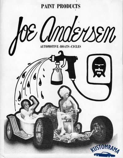 "Custom Auto Painting by Joe Andersen" was a custom paint shop owned and operated by Joe Andersen of Gardena, California. Joe started his pinstriping business on 64th street in Los Angeles, just about 80 feet east of Normandie Avenue, near Ansen Automotive. Louis Senter, the founder of Ansen, encouraged Joe and was a mentor for him in the beginning, and Joe did a lot of engineering for Louie. Joe's first shop was a very clean and redone garage, and the sign on the wall read "Pinstriping by Andersen". While at this location, Joe started airbrushing, and he was one of the first to do airbrushed T-shirts. Bob Holley worked for Joe for a short time while he worked out of the 64th street shop, and Joe taught Bob how to mask and sand. He also gave him some tips on pinstriping.[1]