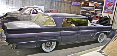 1958 Lincoln Premier restyled by Gambino Kustoms for Beatniks member Dave Hitch. Dave bought the car from his friend Dave Dalli. Dave wasn't too keen about the car in the beginning, but knew that with an Alex Gambino Panel Paint job the car would look bad ass. The car arrived at the Gambino Kustom shop for a restyling on the same day that the legendary car painter Larry Watson passed away, so as fate would have it Alex Gambino and Dave Hitch decided to turn the Lincoln into a Larry Watson tribute creation featuring a simple but bad ass 1960s show car look.[1]