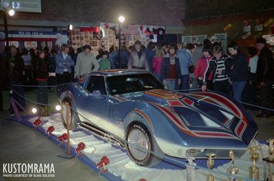 1969 Chevrolet Corvette Sting Ray owned and restyled by Einar Valsjø of Trondheim, Norway. Einar's show car, better known as the Mako Shark, was inspired by the Maco Shark concept car that GM presented to the public in 1965. The build was started in 1975, with a stock 427 cui powered Sting Ray Corvette. After about a year of hard work, Einar's Corvette hit the street as the Mako Shark in 1976. The wild show car made it's first public debut at the Stavanger Motorama. The paint job on the car was spectacular for a Norwegian build, and it made a huge impression everywhere it went. The interior was done in plush, and the engine compartment featured a lot of chromed parts and accessories. The Mako Shark was a crowd pleaser, and it won prizes everywhere it went.