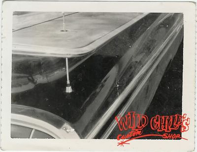 1959 Chevrolet Impala owned and restyled by James Greene of Wild Child's Custom Shop in Kansas City, Missouri. James' Impala had an antenna going trough one of the fins.[1]
