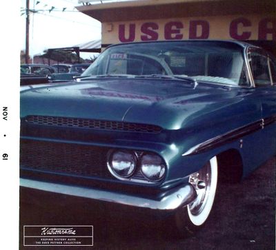 Photos developed in November of 1961 show the car sitting on a used car lot, up for sale. These color photos, shared with Kustomrama by Dave Pettner, show the car in full custom trim, gleaming in its Danube Blue Pearl finish. According to Dave, the asking price was $1,200. "Sounds cheap," he recalled, "but you could buy a new car for $1,800. Twelve hundred dollars would have been a dream to me. I was only making about $200 to $250 a month." Dave also noted that despite the booming custom car scene, there were still a lot of financial struggles in the U.S. after World War II.[2]