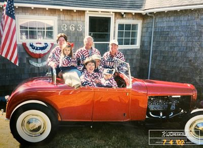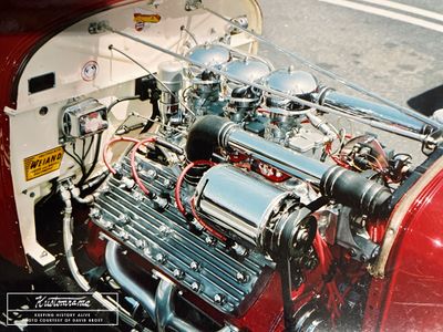 After retirement, Ozzie decided to return the car to street trim. The project faltered, and it was sold to Mark Brislawn of Vancouver, Washington. Later on, Mark sold the car to Pat and David Brost of Portland, Oregon, who completed the rebuild. Pat and David decided to bring the car back to how it could have looked in 1955. The original steel body, doors, deck lid, filled 1932 Ford grille shell, frame, and front suspension were used as a base. A Weiand equipped 1946 Ford flathead, 1939 Ford transmission, 1946 Ford rear end, 1955 Ford F100 front brakes and steering were added.