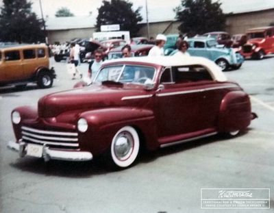 1947 Ford Convertible owned by Pete Jerardi. Jerardi's Ford was restyled by Charlie "Chop Top Charlie" Brewer.