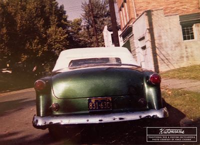 In the summer of 1958, Vince was working for Skyline Motors, taking a boat down to the docks. "I passed a local upholstery shop," Vince told Sondre Kvipt of Kustomrama in 2020, "and they were putting a white top on a customized green 54 Ford convertible. I almost wrecked the truck looking at it." Vince never saw the car around town again after that.[1]